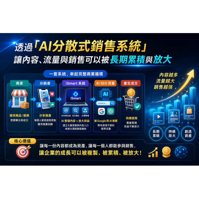 iSmart|AI商業應用平台整體戰略 透過「AI分散式銷售系統」,讓內容、流量與銷售可以被長期累積與放大